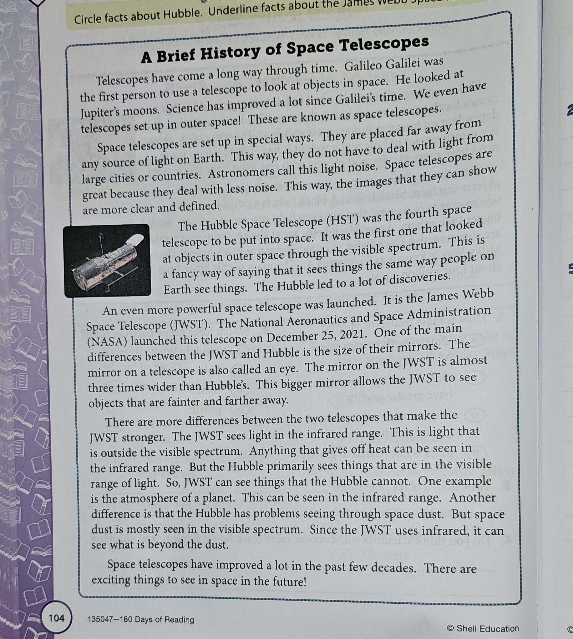 Co-authored 180 Days of Reading for Fifth Grade, 2nd Edition (Teacher Created Materials / Shell Education, 2023) with Kathy Kopp. Wrote the Astronomy and Ocean science sections, each crafted to meet specific Flesch-Kincaid reading level requirements for fifth-grade comprehension.
